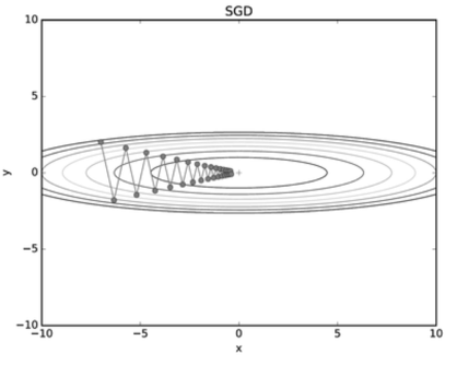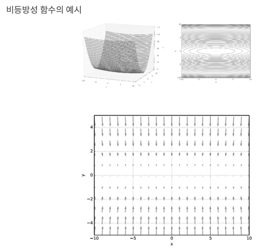 이러한 비등방성 함수에서는 SGD Optimizer로 효율적인 탐색을 할 수 없다.