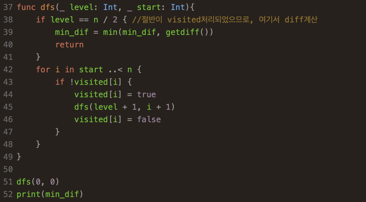 이를 start라는 매개변수로 두었고, for문 안에서 0부터가 아닌 start부터 탐색한다!