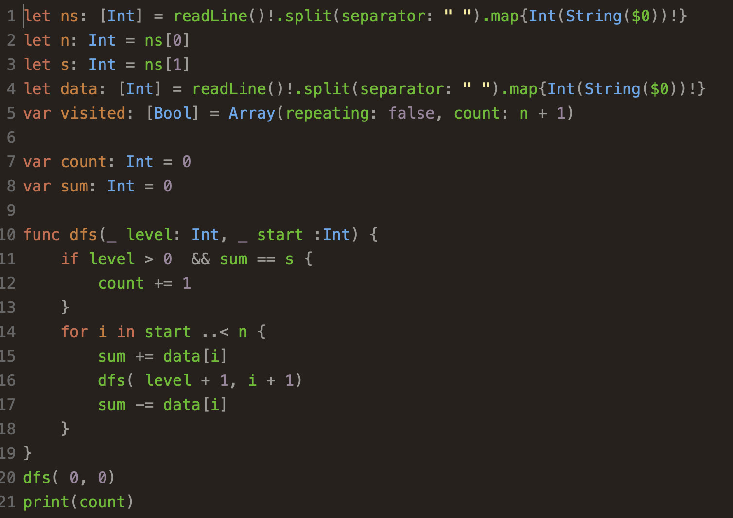 아래 코드가 BackTracking ( 조합 )으로 풀이한 문제이다.
