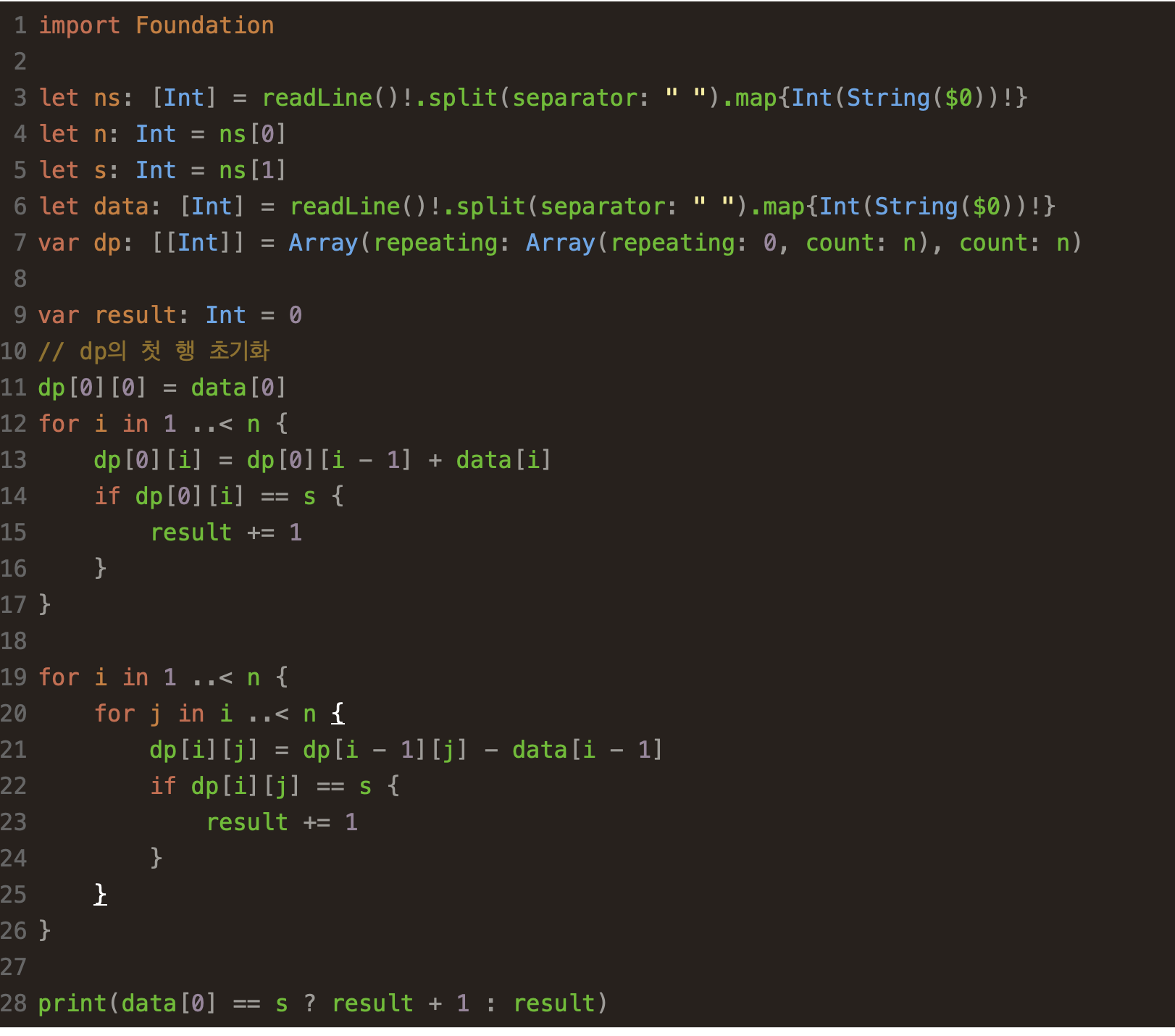 연속된 부분수열의 합이어야만 가능한 줄 알고, 처음에는 DP를 이용해 풀이했었다.
