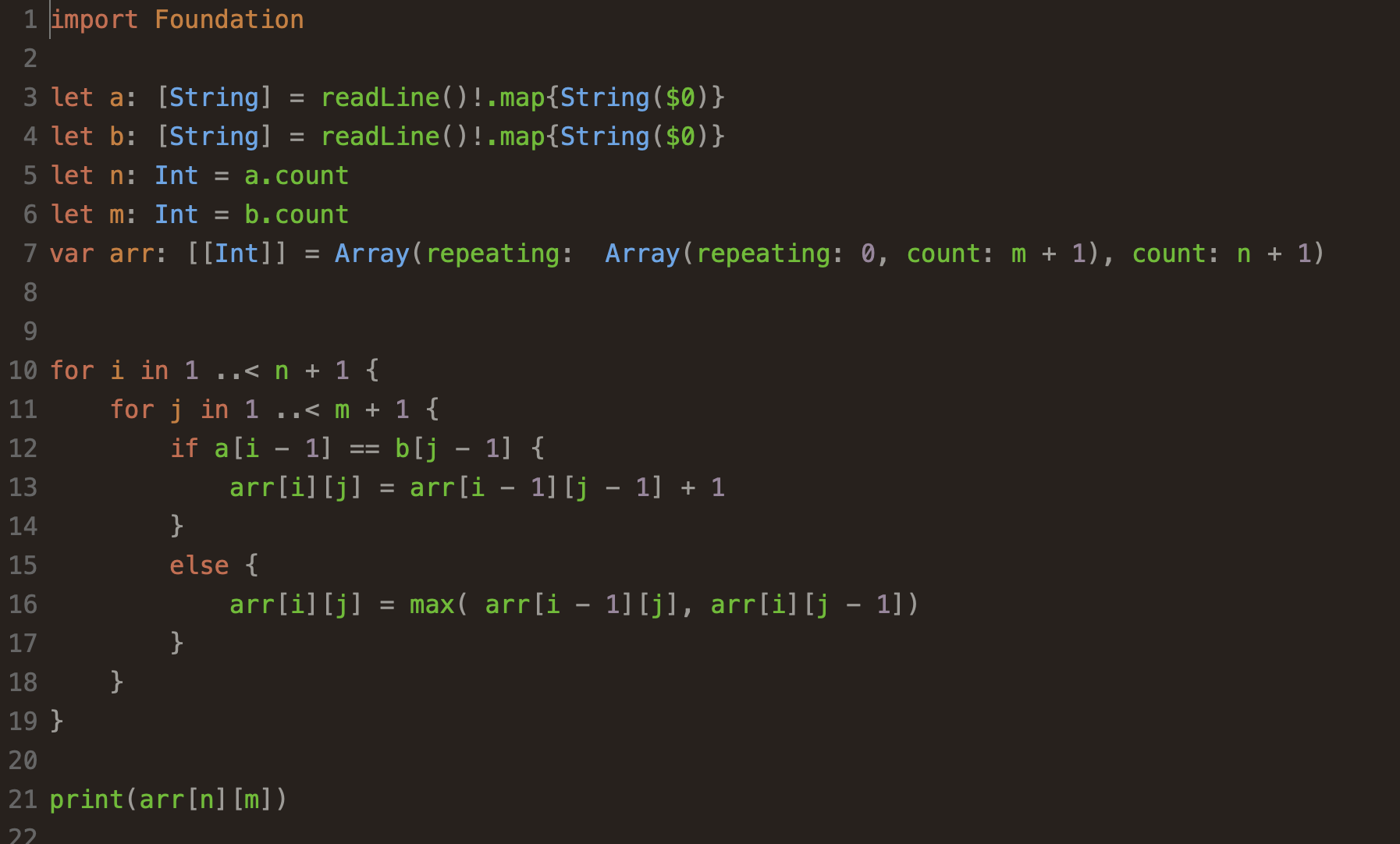 arr[i][j] = max( arr[i - 1][j], arr[i][j -1])인 이유는, arr[i -1][j]는 이미 이전 문자까지 체크했을 때 구해놓았던 최장 공통 부분수열 값이고, arr[i][j - 1]은 현재의 문자를 체크하며 앞쪽에서 업데이트 해주었다면, 뒷쪽으로도 연결시켜주어야하기 때문이다.