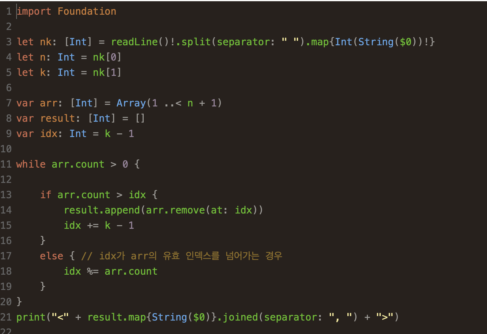 이럴 때는 idx를 arr.count로 나눈 나머지를 idx에 할당해주면 된다.