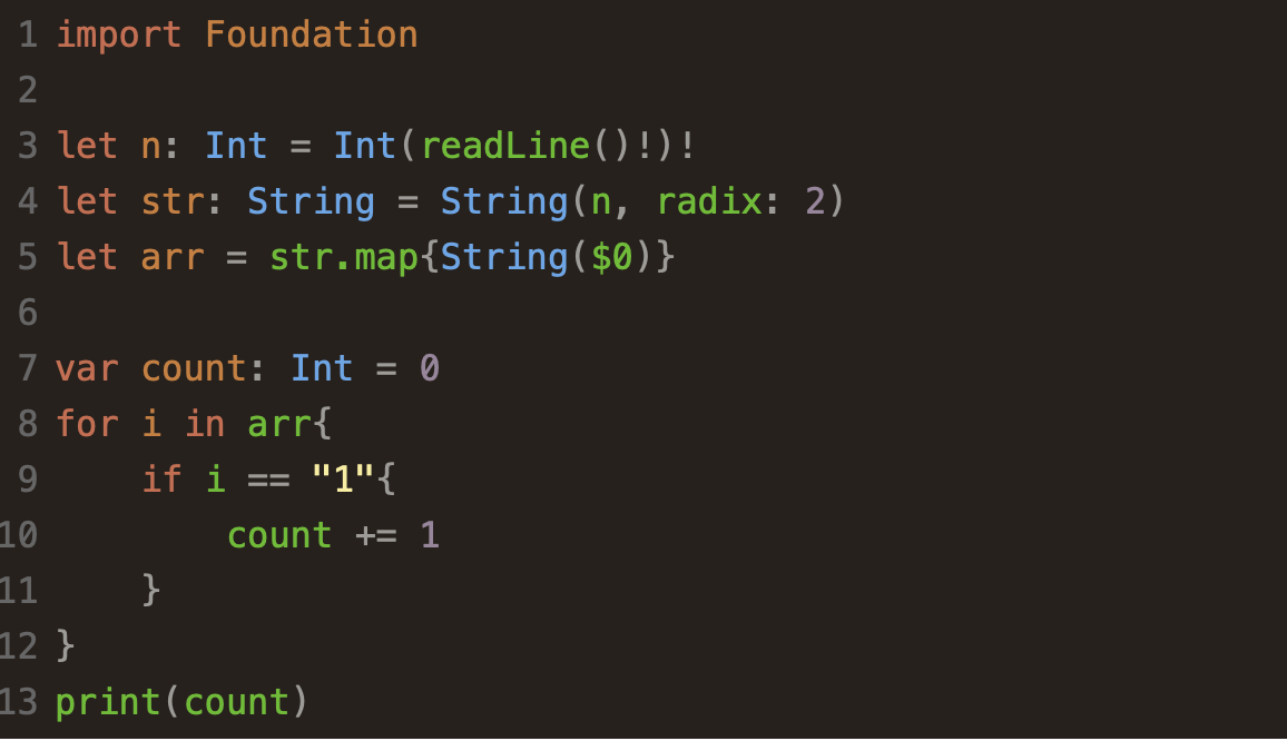 String생성자에 Binary로 바꿀 Int형 값과 radix:2라는 매개변수를 전달해주면, 2진수 String으로 바뀐다.