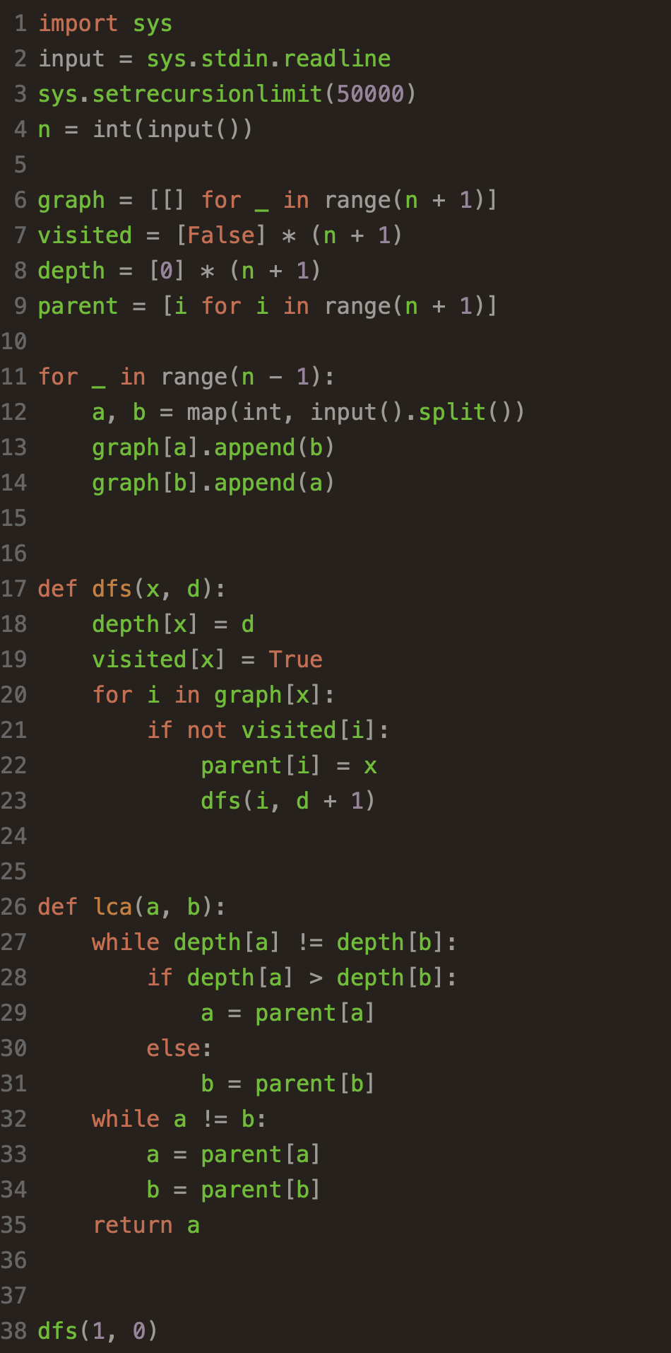 dp를 사용하여 lca의 시간을 단축시킨 버전이 아니라, 메모리를 최소 ( 딱 필요한 만큼만) 사용하면서 LCA를 풀이한 버전이다.
