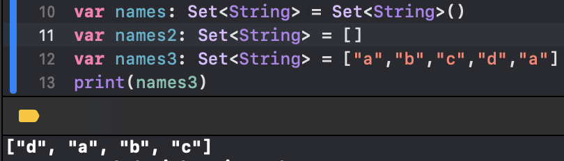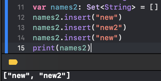 | Set | set.insert("원소") | set.remove("원소") (없어도 nil을 반환할 뿐 오류 X) | . |