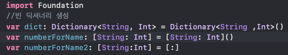 - 빈 딕셔너리를 생성해주려면 type을 정확히 명시해야한다!