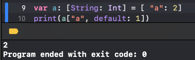 - default를 지정할 때는, 원래의 Dictitionary의 value와 같은 타입으로만 지정 가능하다