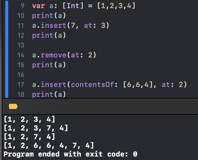 6. arr.insert(contentsOf: [....], at: 인덱스) -> 해당 index에 여러원소 추가