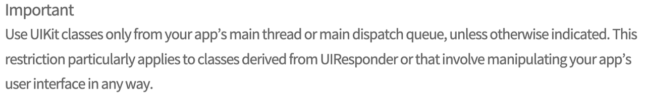 UIKit클래스는 MainThread 혹은 메인 dispatchQueue에서만 사용하라는 것인데요,