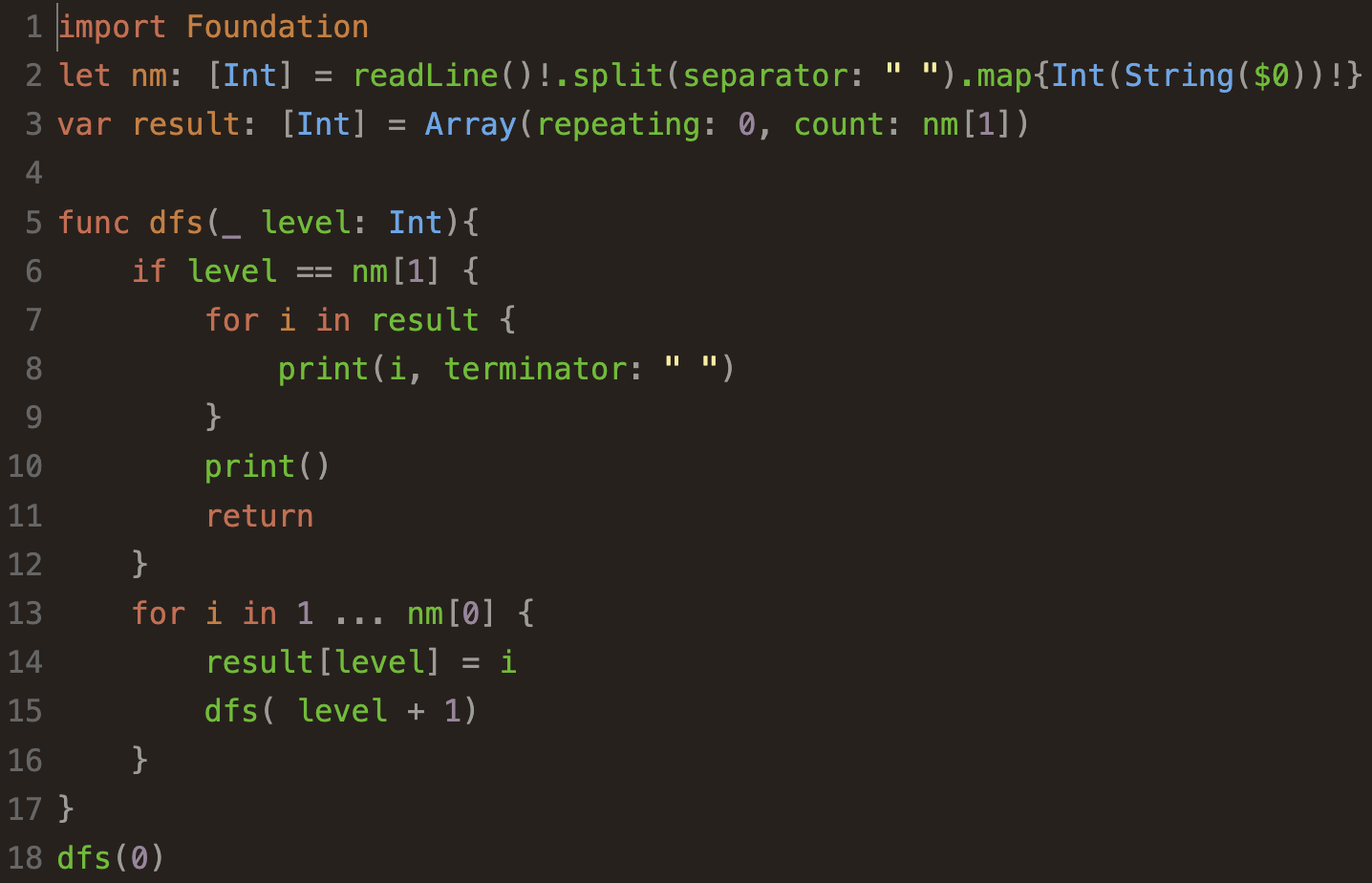 아래와 같이 Python에서 작성하던 알고리즘 그대로 Swift로 언어만 바꾸어 구현했고,