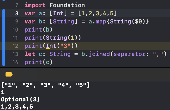 + 배열에 담긴 String들을 joined()함수로 문자열로 이어붙일 수 있다.