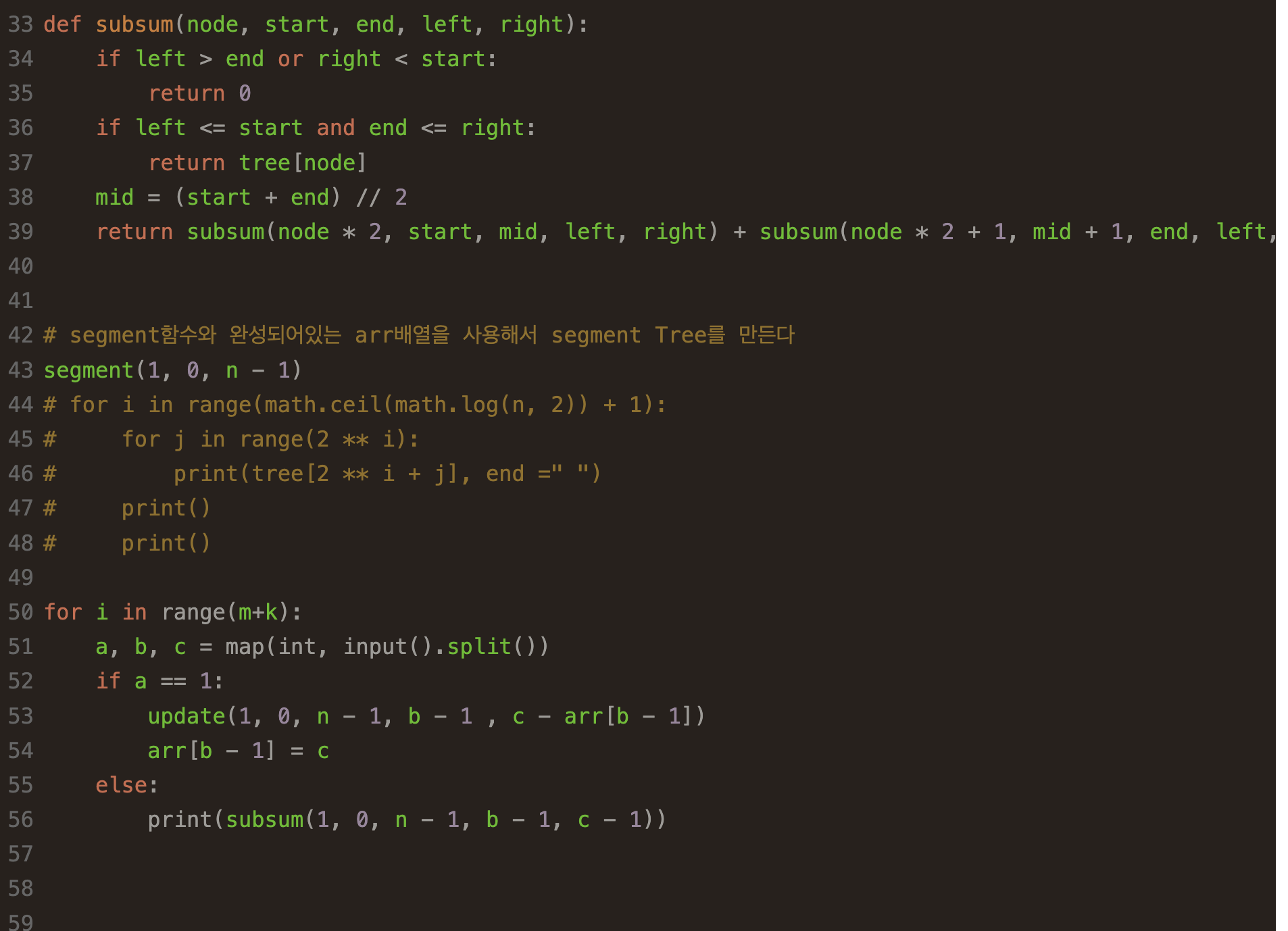 1. segment( 1차원 배열에 담겨있는 Data를 기준으로 Segment Tree를 만들어주는 함수 )