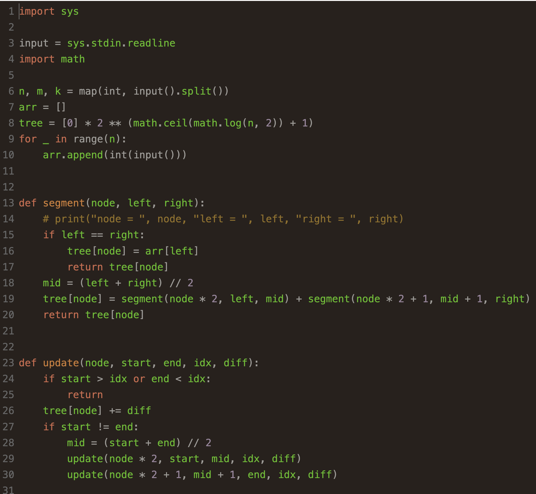 2. update ( idx째에 있는 원소에 diff만큼의 변화를 줌)