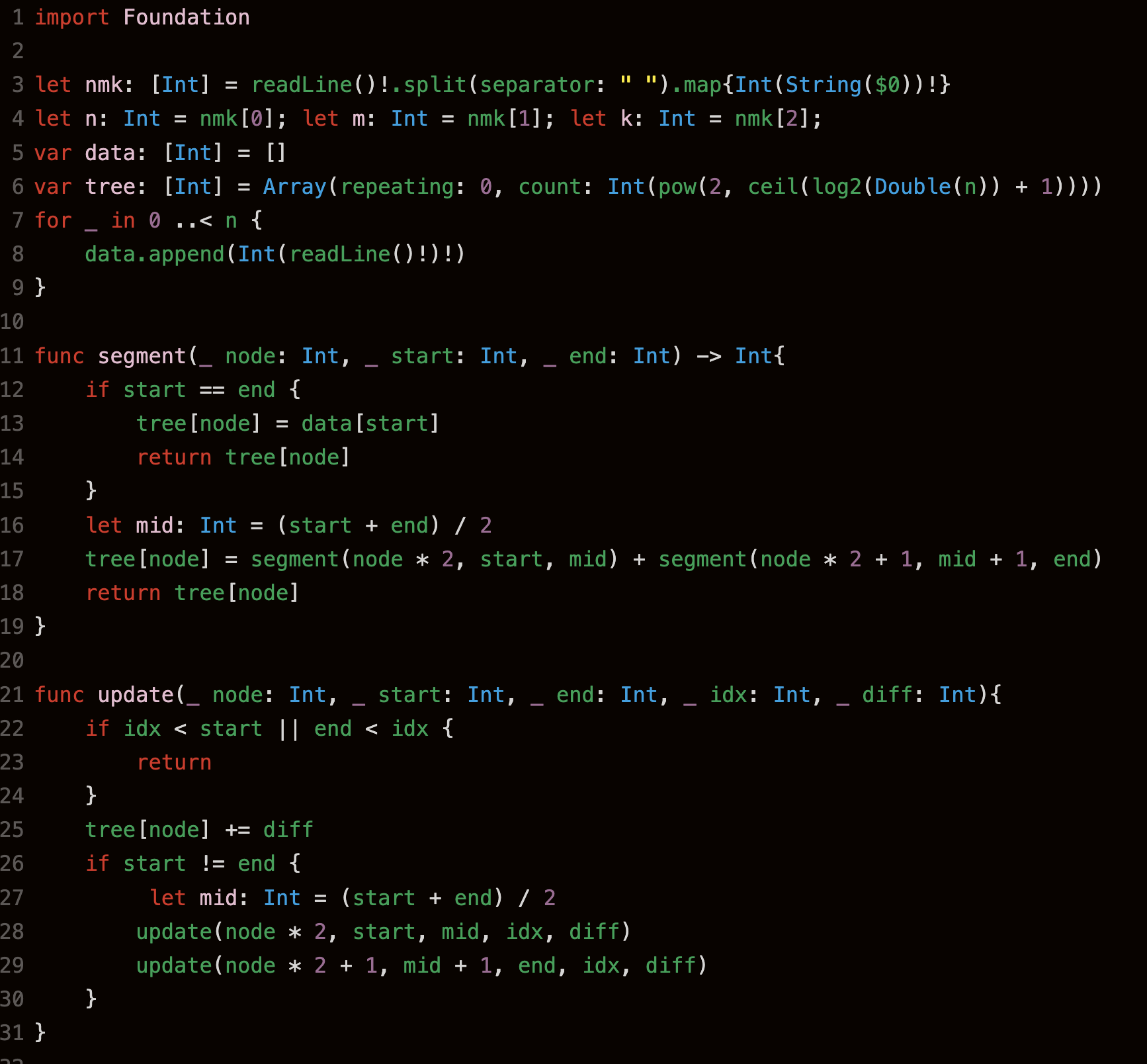 백준 2042: 구간 합 구하기 (Segment Tree / with Swift)