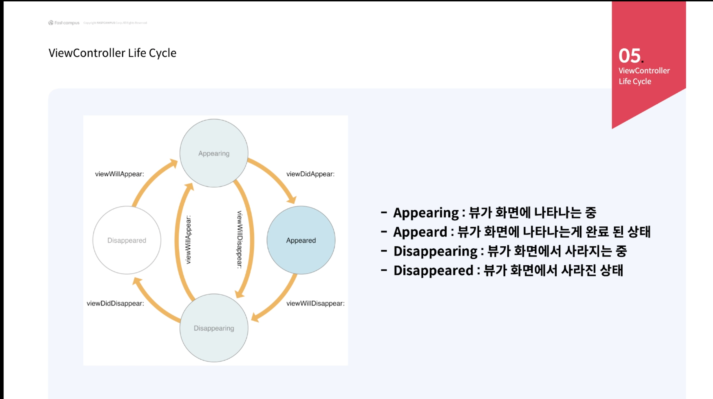 출처: 수강중인 패스트캠퍼스 30가지 프로젝트 강의 - viewController의 생명주기