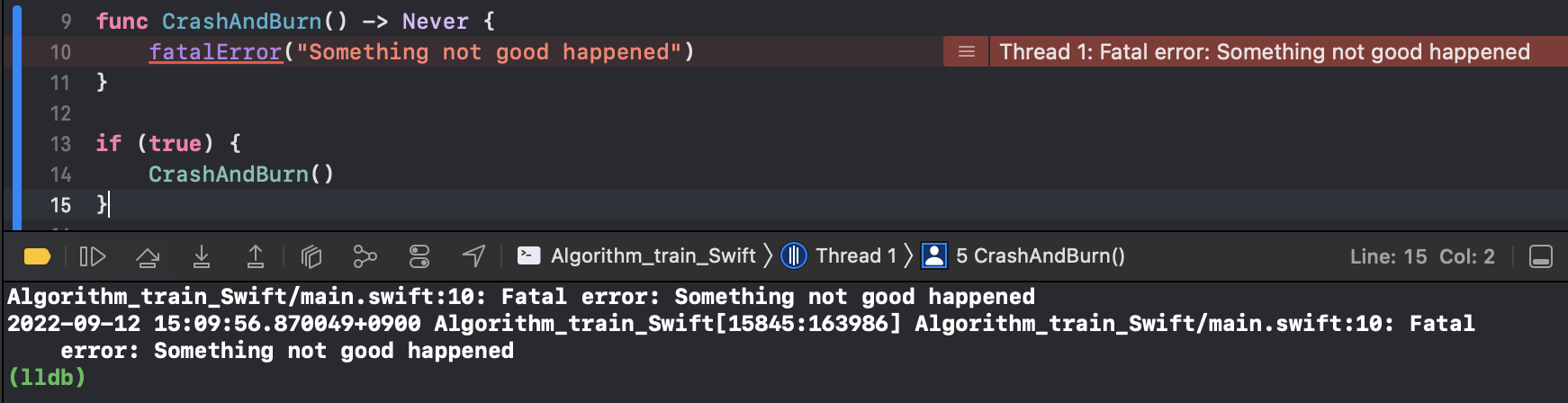 비반환 함수 = 종료되지 않는 함수의 return타입은 Never로 명시해주면 된다.