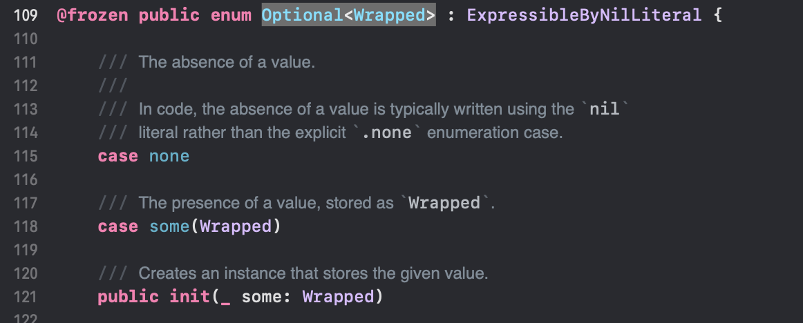 값이 있을 때는 some케이스가 되며, 해당 값이 some케이스의 연관값인 Wrapped에 할당되는 것!