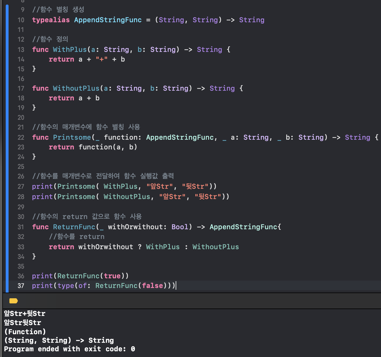 Swift에서의 "함수"는 일급객체이며, 다른 언어에서보다 훨씬 다양한 모습으로 작성할 수 있다.