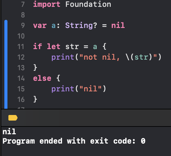 - nil은 옵셔널 변수 혹은 옵셔널 상수에만 사용 가능
