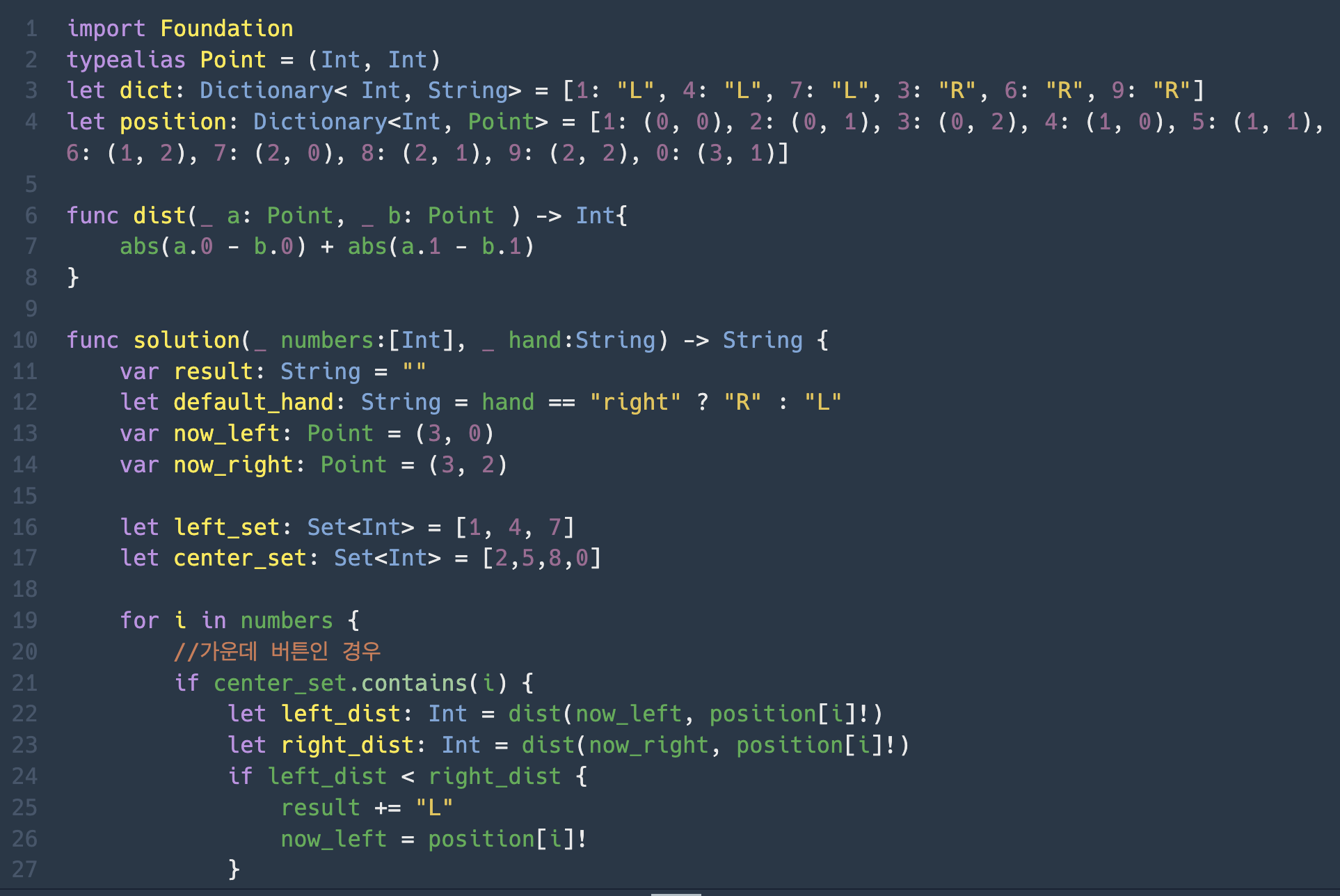 - 먼저 typealias로 Point라는 튜플을 만들어줬다.