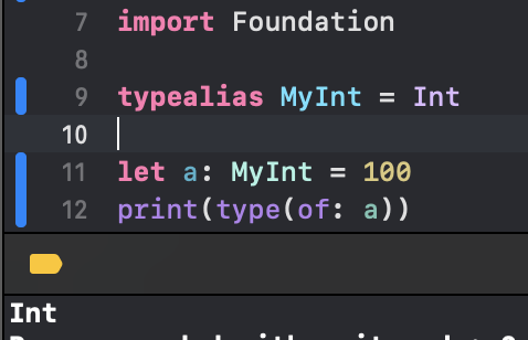 type(of:)메서드로 MyInt 별칭으로 Int값을 할당한 변수의 type을 확인해보면, 원래의 type의 이름이 나오는 것을 보아, 프로그램이 typealias의 원 타입을 잘 알고있음을 확인할 수 있다.