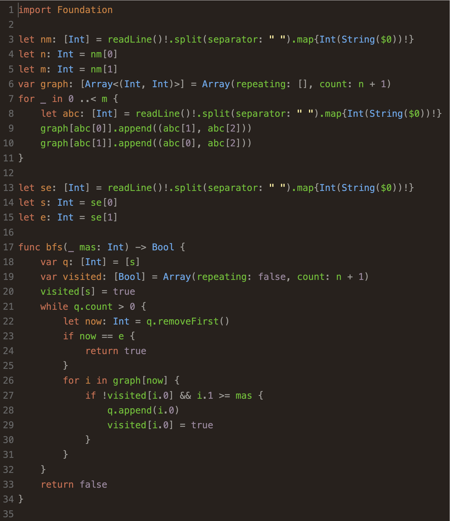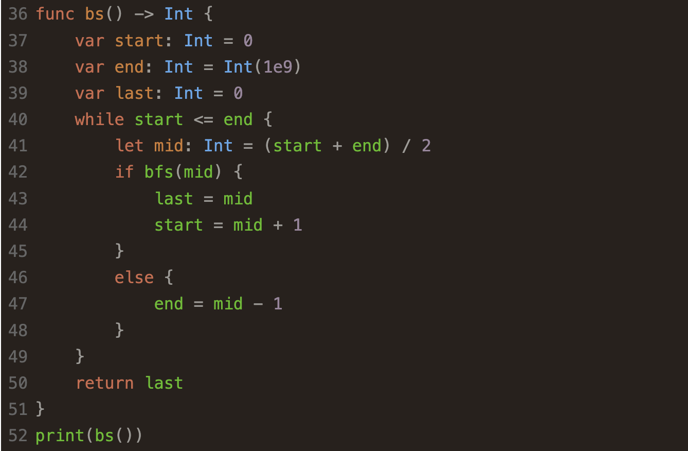 아래는 이분탐색 + BFS 방식으로 풀이한 코드이다.