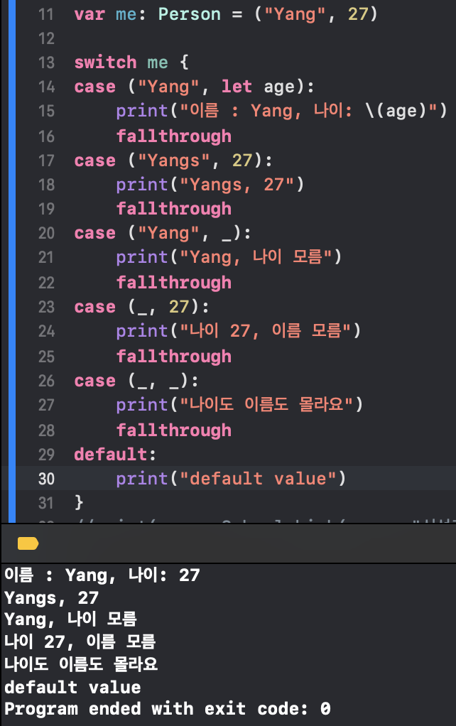 - 5. 와일드 카드 식별자를 활용하여 switch문에서 튜플을 활용할 떄, 특정 위치를 무시할 수 있다.